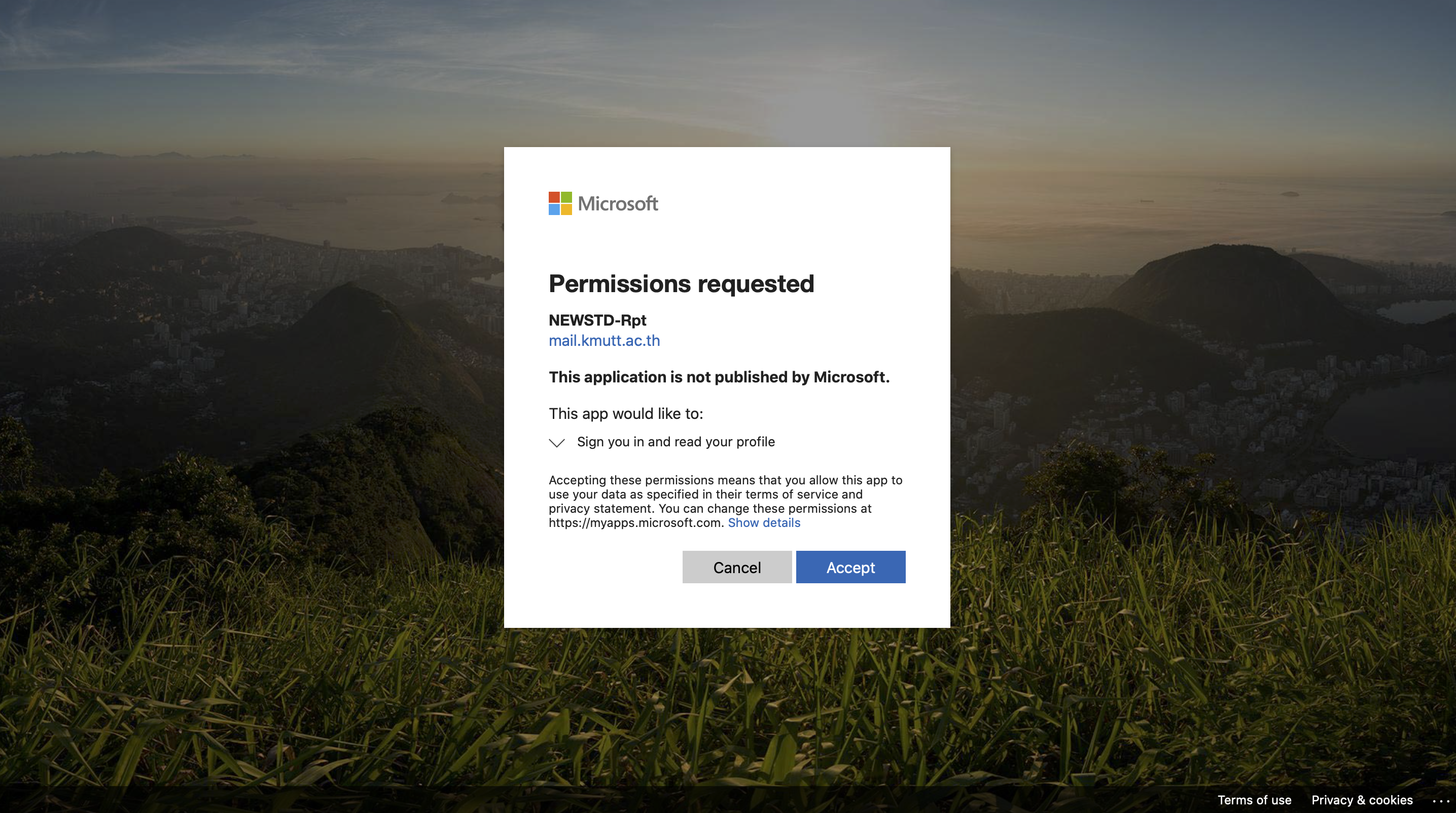 สำหรับผู้เข้าใช้งาน เมื่อเข้าไปใช้งานแต่ละระบบครั้งแรก ระบบจะขอ Permission Request ของผู้ใช้งาน โดยผู้ใช้งานต้องทำการ Accept ถึงจะเข้าใช้งานแต่ละระบบได้