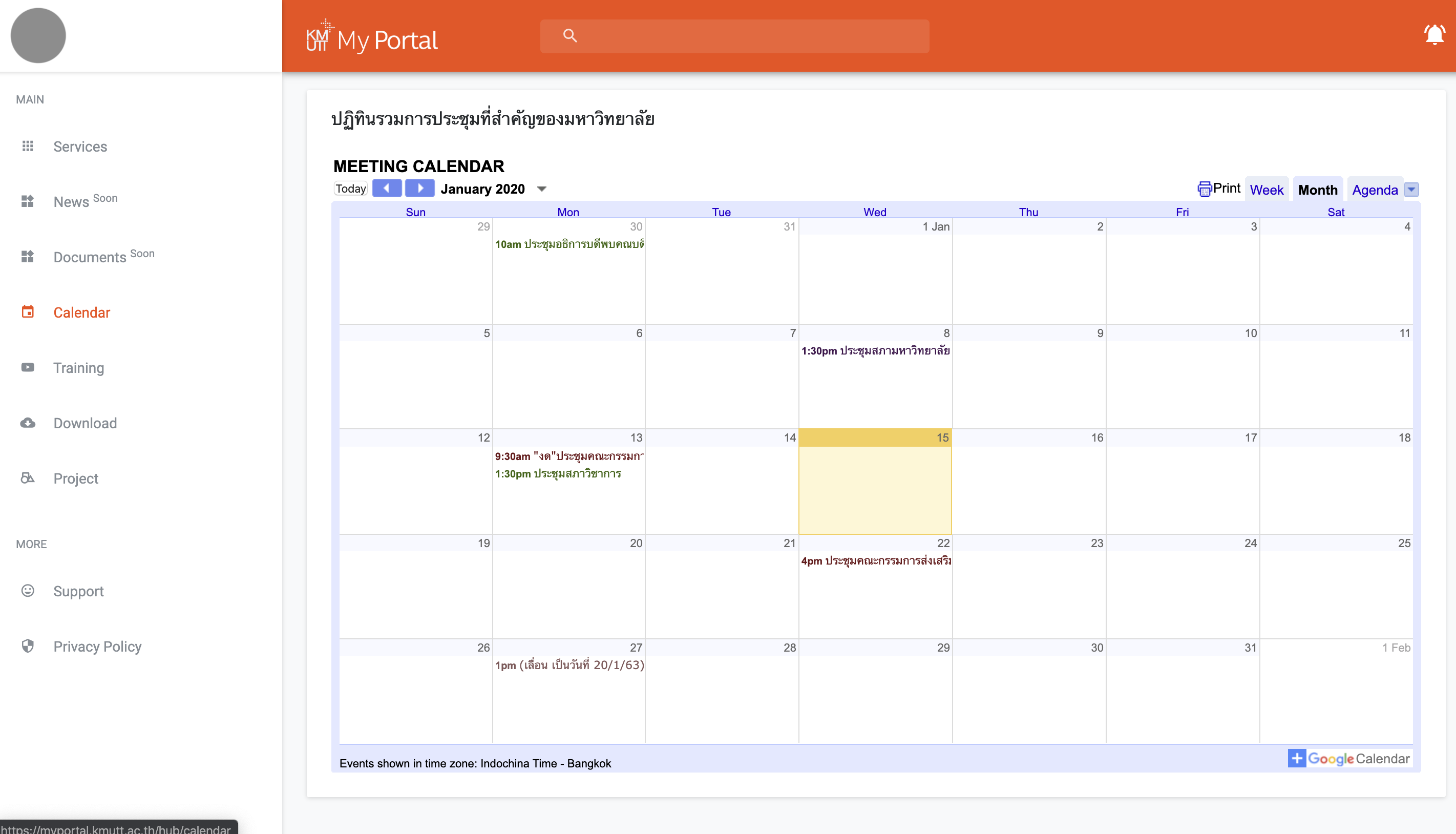 เนื่องจากปฏิทินมหาวิทยาลัย ได้ใช้งานบนระบบ Google Calendar ดังนั้นก่อนเข้าใช้งานปฏิทินมหาลัย ต้องทำการ Login Google apps ของมหาลัยก่อน ในกรณีที่เลือกปฏิทินฯ แล้วไม่ปรากฏตารางปฏิทิน หมายถึงผู้ใช้งานยังไม่ได้ Login Google apps (แนะนำใช้งานผ่าน Internet Explorer , Microsoft Edge หรือ Google Chome)