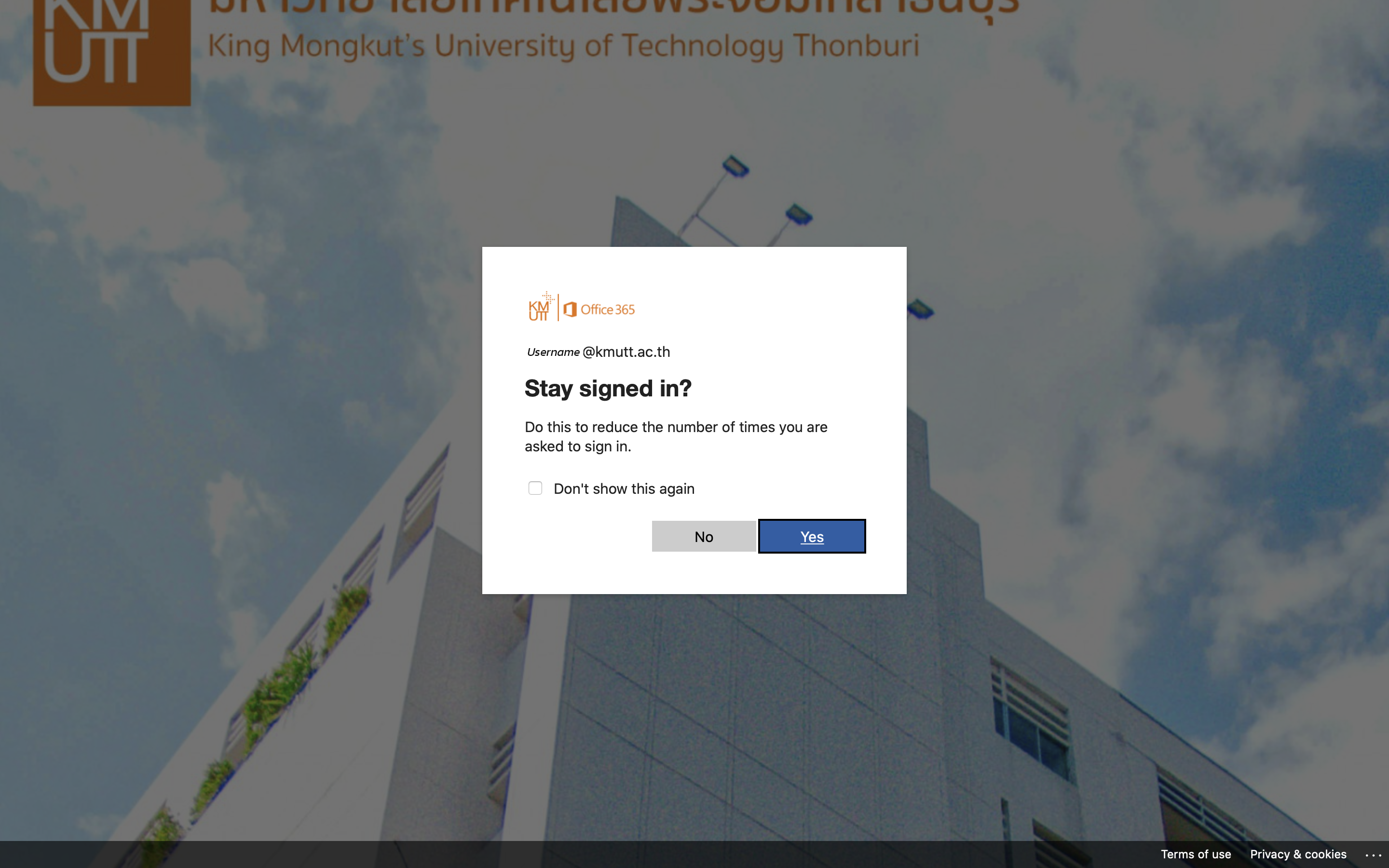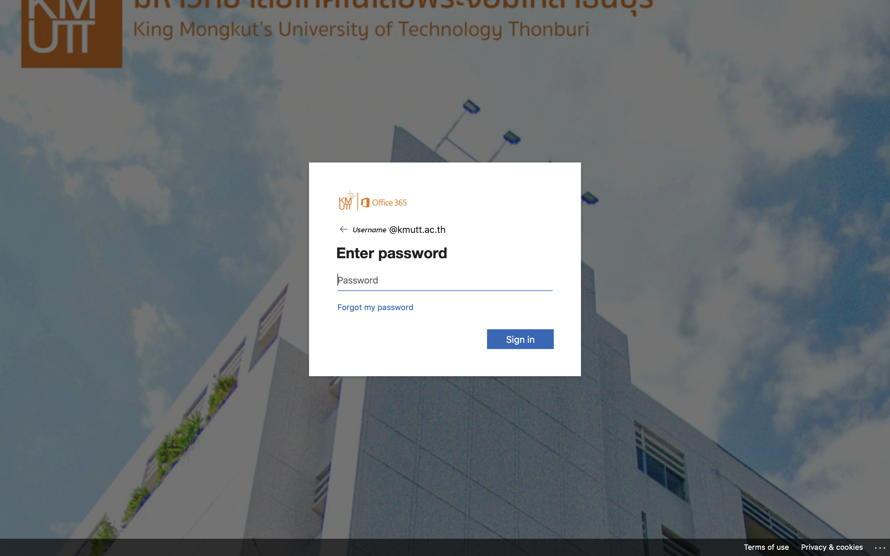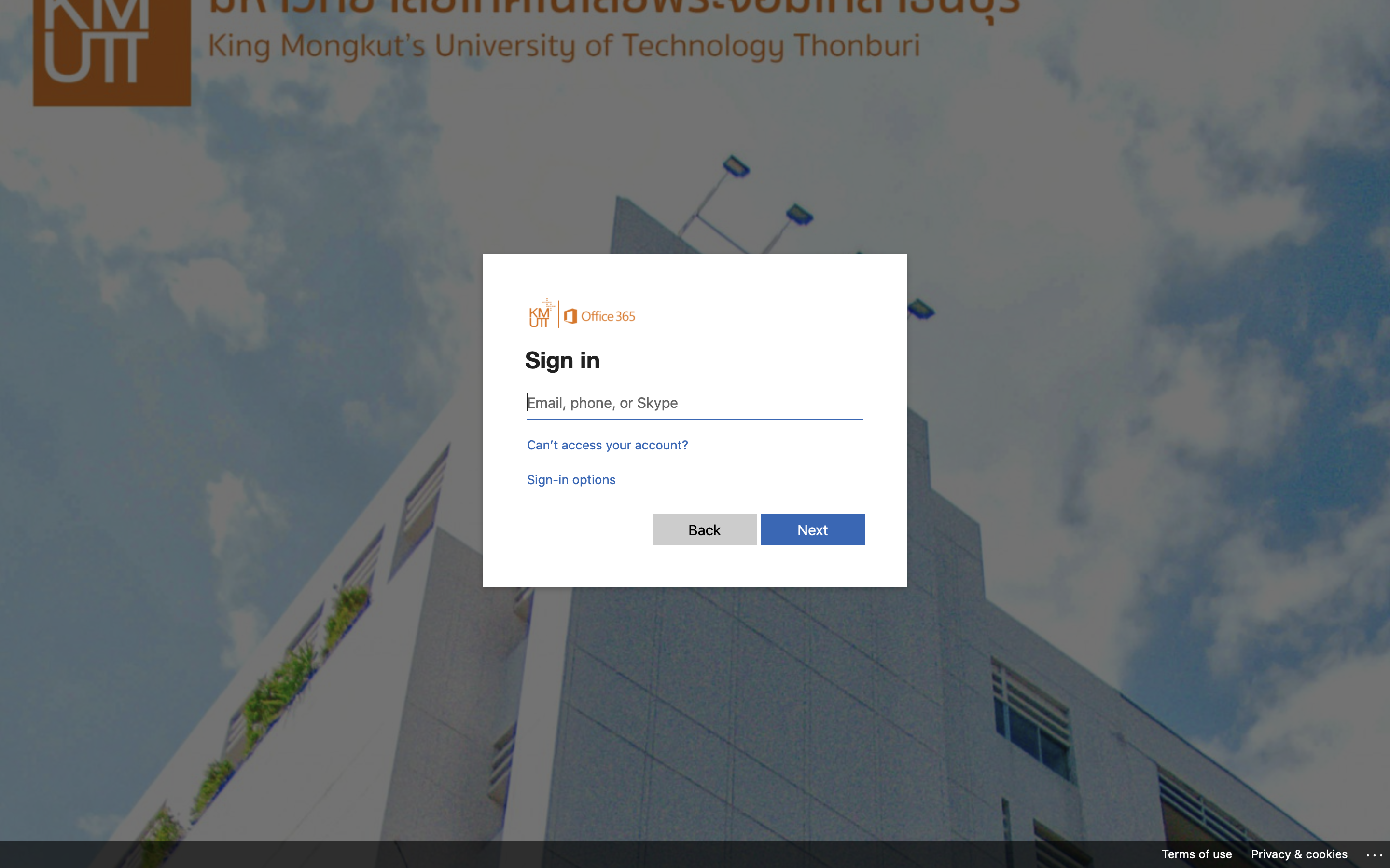 เมื่อเข้าระบบ My Portal จะเข้าพบหน้า Login Office 365 โดยผู้ใช้งานต้องมี e-mail ของมหาวิทยาลัยที่เป็น Office 365 (@kmutt.ac.th) ท่านสามารถตรวจสอบได้ว่า e-mail ของท่านสามารถเข้าใช้งาน My Portal ได้หรือไม่ คลิกที่นี่