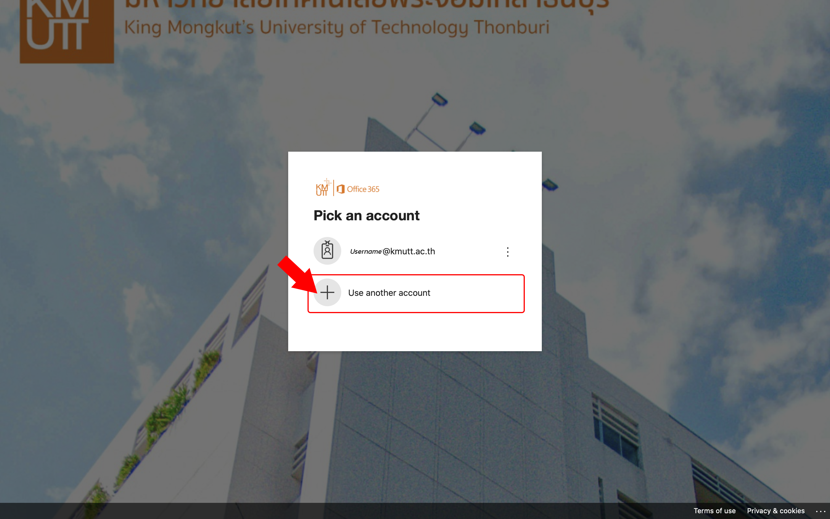 2. กรณีต้องการเข้าใช้งานด้วย User อื่น ให้เลือก "Use another account" หลังจากนั้นทำการลงชื่อเข้าใช้ตามขั้นตอนปกติ